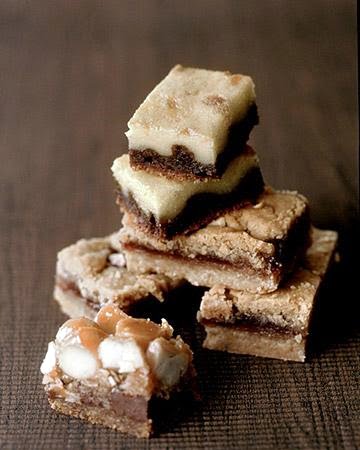3.In the clean bowl of the electric mixer fitted with the paddle attachment, beat together mascarpone cheese, remaining eggs and yolks, remaining sugar, and remaining vanilla on medium speed, until smooth. Pour over chocolate mixture. Bake until cheese mixture is golden and set, about 35 minutes. Transfer to a wire rack to cool completely. Cut into about sixty 1-by-1 1/2-inch pieces.
