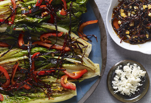 Grilled Romaine and Red Peppers with Ancho Vinaigrette