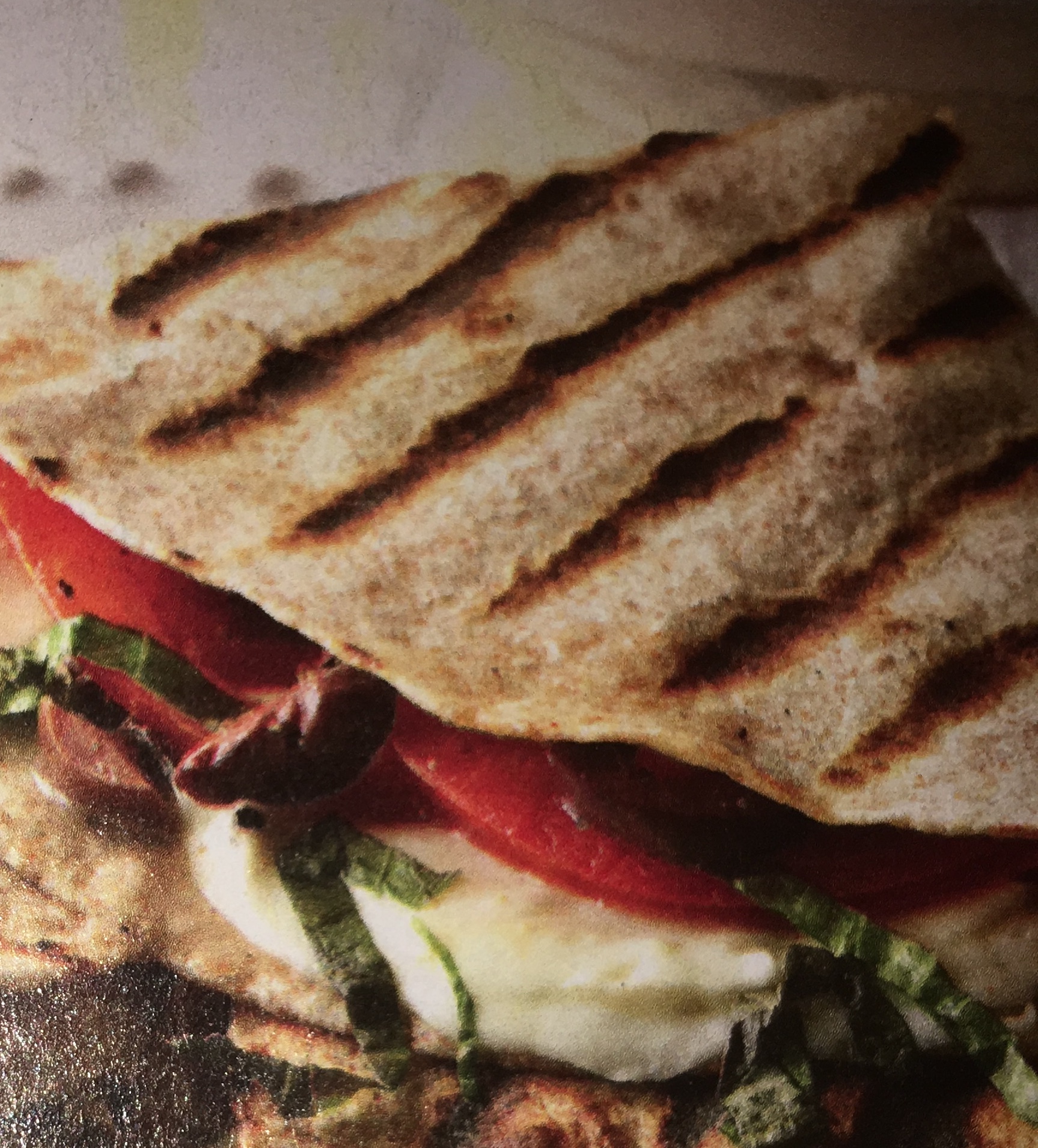 Layer cheese and tomatoes on half of each tortilla sprinkle with basil olives and pepper fold close