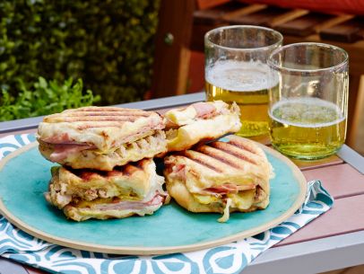 Put the sandwich on the grill, place a large baking sheet on top and weigh it down with a large cast-iron pan or 2 large cans of food. Grill for 5 minutes, remove the baking sheet and weight, flip the sandwich, weigh it down again and grill until the Swiss cheese has melted, about 5 minutes more.