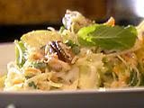 In a small bowl, stir together the mustard, sugar, mayonnaise, ground chipotle, and lemon juice until blended. Season with salt and pepper. Pour the dressing over the cabbage mixture and toss well to coat. Taste again for seasoning, then mound onto a platter and garnish with mint leaves.