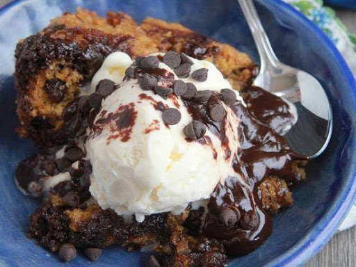 Serve with Ice Cream and Chocolate Morsels and/or chocolate syrup!