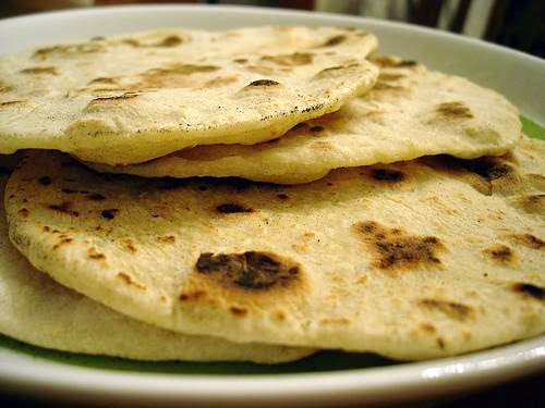 -Cover for 45 mins, then cook on upside down cast-iron pan over burner on medium-high heat