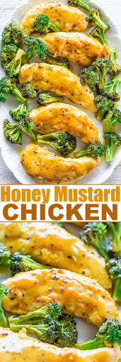 Add the broccoli and stir to combine, making sure the broccoli gets coated with honey mustard. Cover and cook over medium-low heat allowing broccoli to steam for about 3 to 5 minutes or until broccoli is crisp-tender and chicken is cooked through. Serve immediately. Dish is best warm and fresh but extra will keep airtight in the fridge for up to 5 days, reheat gently as desired.