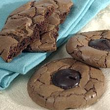 Bake the cookies for 11 to 12 minutes, until their tops are shiny and cracked. They won't crack until the very end, so keep a close eye on them; when they're cracked all the way across the top surface, they're just about done. The point is, you want these baked all the way through, but just barely; additional baking will make them crisp rather than chewy. Remove the cookies from the oven, and top each with a kiss-shaped chocolate, a nonpareil, or a bittersweet chocolate wafer, if desired. Wait 5 minutes, then transfer them to a rack to cool.