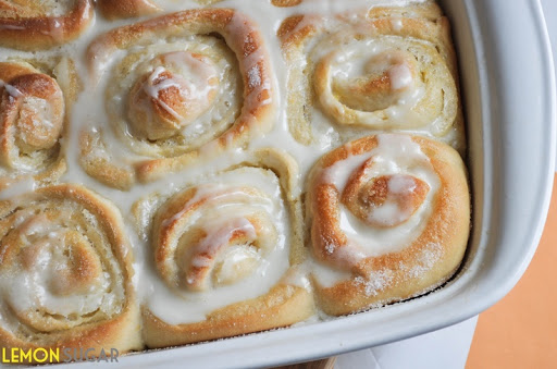 Drizzle glaze (see below) over the top of the warm rolls, and enjoy!