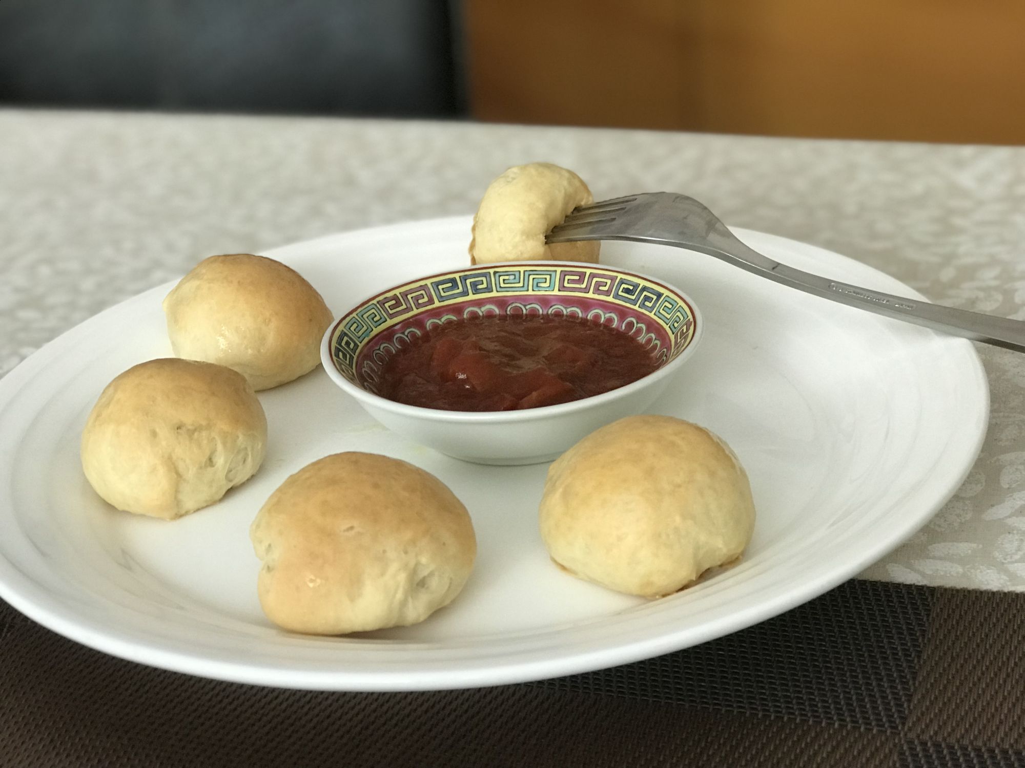 Oil a baking sheet. Knock the air out of the dough and knead again for several mins. Take a small piece of dough (about the size of a walnut) and roll it into a ball. Place the ball on the baking sheet and repeat with the remaining dough, spacing the dough balls about ½ cm apart. Cover and leave to rise for 30 mins. Meanwhile, to make the garlic butter, melt the butter in a pan, then stir in the garlic. Season.