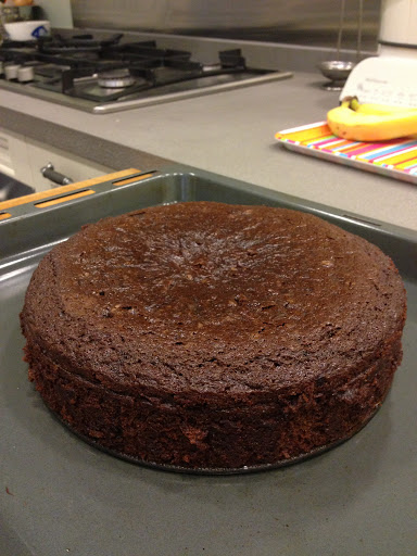 5) Add stout-chocolate mixture to egg mixture and beat just to combine.