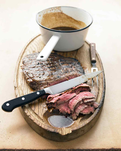 Lift steaks from marinade onto a platter; set aside. Make sauce: Place reserved marinade in a large saucepan. Bring to a boil over high heat; cook until thickened and reduced to about 1 cup, 20 to 25 minutes. Season with salt and pepper.