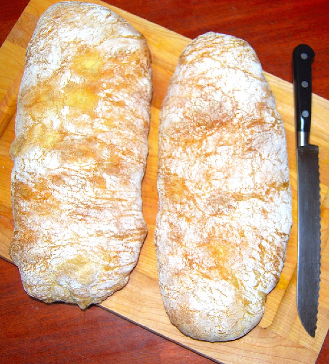 Place the ciabatta loaves directly on the baking stone by sliding the parchment off your cookie sheet. If you are really not sure how to do this, just place the entire baking sheet on top of the baking stone.