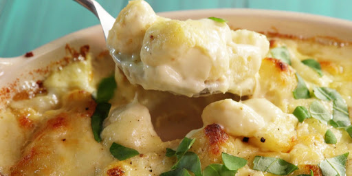 4. Add gnocchi to prepared baking dish. Pour cheese sauce over gnocchi and and stir until pasta is evenly coated. Top with remaining cheese and a few grinds of pepper. Bake until cheese is bubbly and golden, 25-30 minutes.