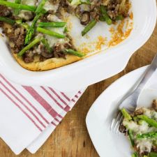 2. In the same pan, heat 2 tablespoons olive oil and add asparagus. Add ginger and garlic, then season with ½ teaspoon of salt. Stir frequently and cook until the asparagus is tender-crisp.