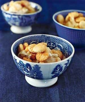 cod pieces into the chowder mixture. Top with the crackers and cover loosely with foil. Bake until the fish is cooked through,
