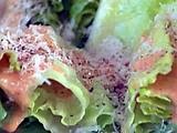 - 1 large head romaine lettuce, outer leaves removed, cut in half from tip to root