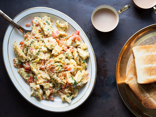 Transfer eggs to a platter. Sprinkle remaining cilantro over eggs and serve hot, with toast.