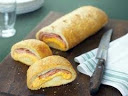 Top dough evenly with ham, overlapping slices slightly and leaving a 1/2-in. border around all sides.