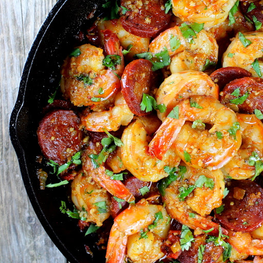 Return the cooked chorizo and all the cooked shrimp to the pan, add 2 tablespoons of butter, and fold together. Let it cook for one more minute, serve warm with French or sourdough bread and garnish with chopped cilantro.