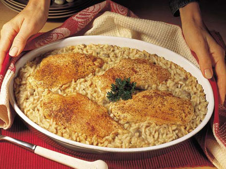 Fast and easy Chicken & Rice Casserole recipe. You can replace the chicken breast with pulled rotisserie chicken meat for a quicker meal. I like to double the soup and rice for left overs.