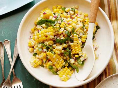 2. Toss the kernels in a large bowl with the red onions, vinegar, olive oil, salt, and pepper. Just before serving, toss in the fresh basil. Taste for seasonings and serve cold or at room temperature.