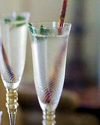 3. Fill tall glasses with cracked ice and pour in the drink, filling them about two-thirds full. Top with Champagne, garnish with the mint sprigs and serve.