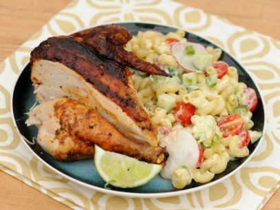 Grilled Butterflied BBQ Chicken with Macaroni Salad