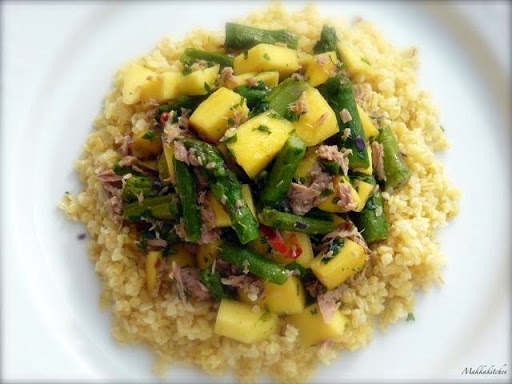 Meanwhile the bulgur absorbed all the water you can serve garnished with the asparagus-tuna-mango ragu.