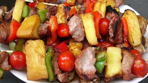Lightly oil the grill grate. Cook kabobs on the prepared grill for 10 minutes, or to desired doneness. Baste frequently with reserved marinade during the last 5 minutes of cooking.