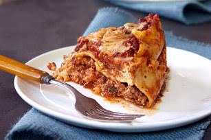 SPOON 1 cup meat sauce into slow cooker; top with layers of half each of the noodles, broken to fit; and cheese mixture. Cover with 2 cups meat sauce. Top with remaining noodles, broken to fit; cheese mixture and meat sauce. Cover with lid.