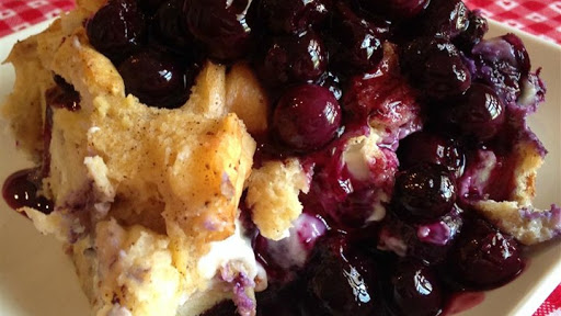 Whisk 2 cups milk, eggs, 2 teaspoons vanilla extract, cinnamon, and nutmeg together in a large bowl; pour over bread mixture. Sprinkle 1 cup blueberries over bread-egg mixture. Cover dish tightly with aluminum foil and refrigerate, 8 hours to overnight. Remove from refrigerator 30 to 60 minutes before baking.