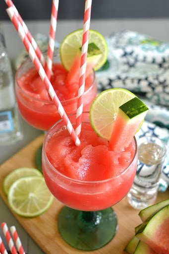 - 1 cup fresh, ripe watermelon, cut into 1/2" cubes and frozen (measure first, then freeze!)
