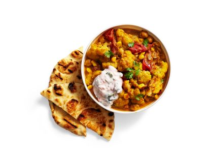 Make the curry: Heat the vegetable oil in a large Dutch oven over medium heat. Add the onion and cook, stirring occasionally, until lightly golden, about 8 minutes. Add the garlic, ginger and jalapeno. Cook, stirring, until sizzling, about 1 minute. Add the tomato paste and cook, stirring, until it dissolves into the oil, about 1 minute. Add the curry powder, garam masala and cinnamon stick. Cook, stirring, until the spices darken, about 1 minute. Add 2 cups water, the cauliflower and chickpeas. Bring to a simmer, cover and cook until the cauliflower is almost tender, about 6 minutes.