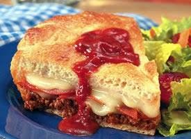 1. Heat oven to 350°F. Spray 9-inch glass pie plate with cooking spray. In 10-inch skillet, cook beef and onion over medium-high heat, stirring frequently, until beef is thoroughly cooked; drain. Stir in pizza sauce until well mixed.