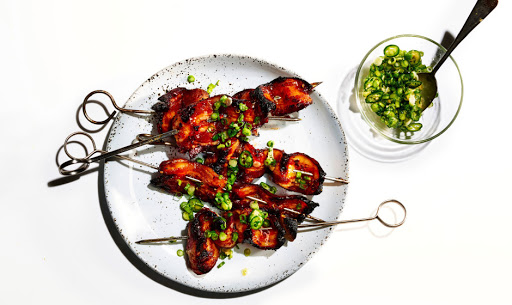 Sweet and Spicy Bacon Kebabs with Scallion-Ginger Relish