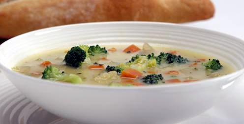 In large saucepan, heat oil over medium heat; cook onion, carrots, garlic, thyme and oregano, stirring occasionally, for 5 minutes or until onion is softened. Add stock, potato and broccoli; bring to boil. Reduce heat, cover and simmer for 15 minutes or until potato is very tender. Add peas; cook for 5 minutes. Pour half into blender, puree until smooth. Return to saucepan. Stir in milk, salt and pepper; heat until steaming.