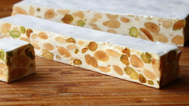 Cut torrone into 1-inch squares using a sharp serrated knife.