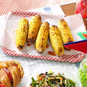 Moisten a paper towel with cooking oil; using long-handled tongs, lightly coat the grill rack. Grill corn, covered, over medium heat for 10-15 minutes or until corn is tender, turning and basting occasionally with remaining sauce.