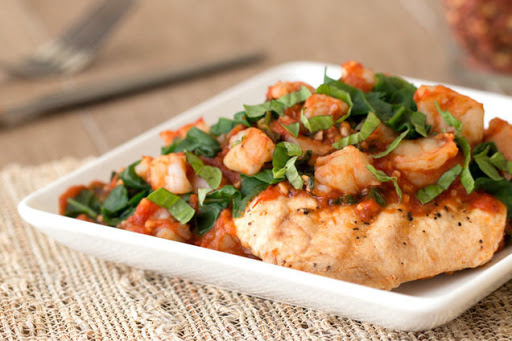 Top chicken with contents of the skillet. Sprinkle with remaining 1 tbsp. basil.