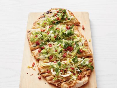 Meanwhile, combine the fennel, escarole, the remaining 2 tablespoons olive oil, the vinegar and red pepper flakes in a bowl; season with salt and pepper and toss. Scatter the salad over the pizza and top with the pancetta; season with salt. Cut into pieces.