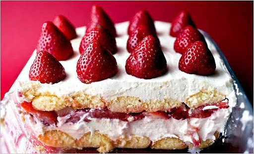 Spoon strawberries and juices on top of mascarpone in an even layer. Dip more ladyfingers and arrange on top of berries in an even layer. Top with remaining mascarpone mixture, using a spatula to smooth.