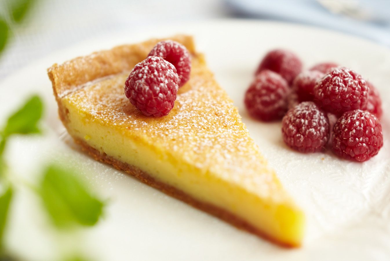 The filling is a lemon curd adapted for this tart. Once the lemon curd ingredients have been combined, cook the curd immediately; otherwise it will have a grainy finished texture. To prevent the curd from acquiring a metallic taste, make absolutely sure that all utensils coming into contact with it--bowls, whisk, saucepan, and strainer—are made of non-reactive stainless steel or glass. Since the tart pan has a removable bottom, it is more easily maneuvered when set on a cookie sheet. If your pre-baked tart shell has already cooled, place it in the oven just before you start the curd and heat it until warm, about 5 minutes. Serve the tart with lightly whipped cream, the perfect accompaniment to the rich, intensely lemon filling.