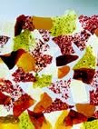 1. Once the croquant and caramel slices have been individually rolled out, cut them into pieces and place them on an empty plate, alternating the flavors.