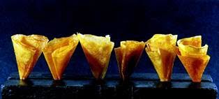 6. Once they are caramelized, fold them in half while still in the oven to make sure they do not cool. Repeat the operation to make a triangle. Try to keep them as aired as possible. Add a final fold by pressing on the side until you have made a fan.