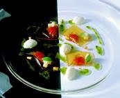 6. Put the parmesan foam in a bowl, use it to make small quenelles and put four on each plate.