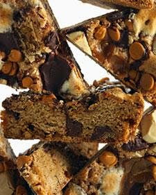 Spread batter in prepared pan. Scatter remaining marshmallows, chocolates, butterscotch chips, and caramels on top. Bake until top is golden brown and a cake tester inserted into the center comes out clean, about 35 minutes. Let cool on a wire rack. Lift out of pan, and transfer to a baking sheet. Refrigerate until set, at least 30 minutes.