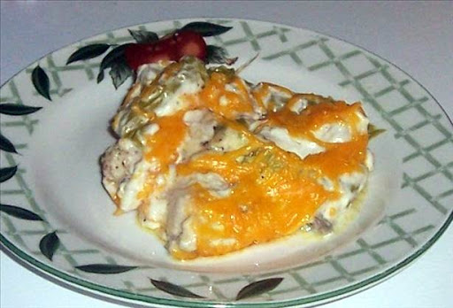 Sprinkle with cheddar cheese and bake, uncovered, at 350F (180C) for 30-35 minutes.