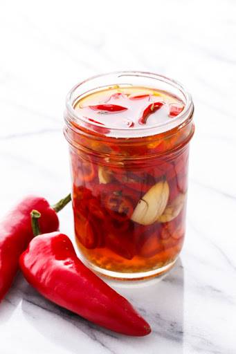- 1/2 lb red jalapenos or Italian roasting peppers, thinly sliced into 1/4-inch rounds