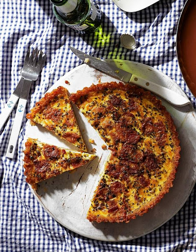 Remember those crispy baked potato skins loaded with melted cheddar, bacon bits, sour cream and chives? This quiche brings them back, but in a richer, whimsical and irresistible way. Think of it as America’s answer to the Lorraine. A sharper cheddar gives the starchy crust a boost, while topping the filling with mild cheddar allows the bacon to shine through.
