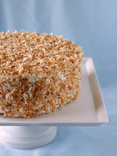 While cakes are cooling, spread shredded coconut on rimmed baking sheet; toast in oven until shreds are a mix of golden brown and white, about 15 to 20 minutes, stirring 2 or 3 times. Cool to room temperature.