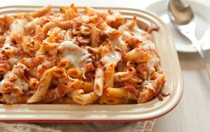 Transfer half of the pasta to baking dish. Evenly spread half of the cheese mixture on top. Then add the remaining pasta followed by the remaining cheese mixture. Sprinkle the remaining ½ cup mozzarella on top.