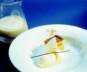 1. Infuse the cream and the cinnamon. Beat the egg yolks and sugar together until they are white and fluffy. Add the infused cream.